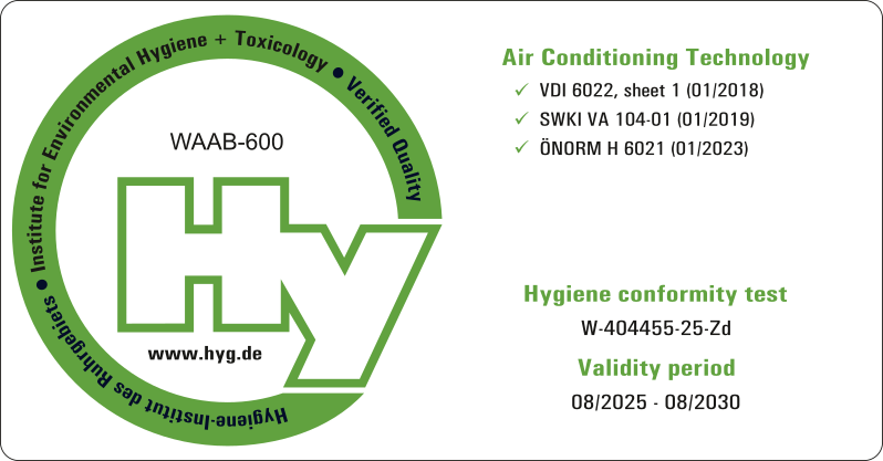Las vigas frías activas serie WAAB cuentan ahora con la certificación VDI 6022, uno de los estándares europeos más exigentes en materia de higiene para ventilación y climatización.